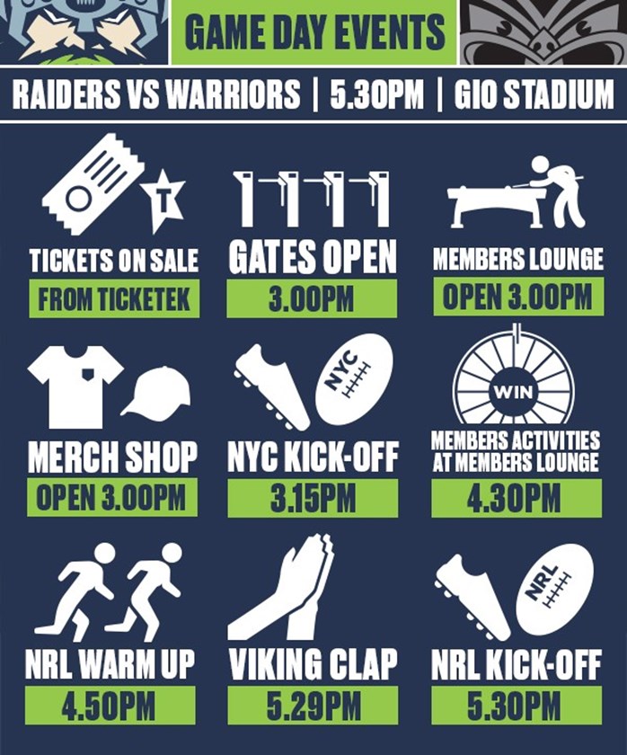 The Raiders will be holding a signing session at Raiders Belconnen following the match. The signing session will be held between 8.30-9.30pm. All fans are welcome.