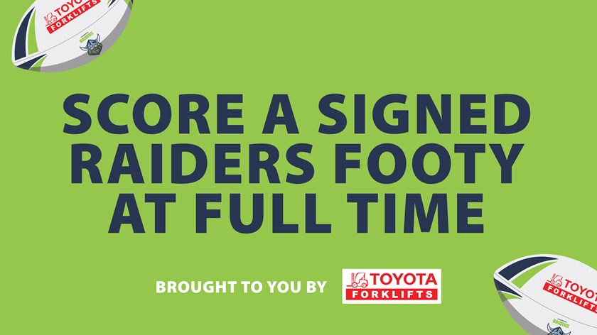 Raffle tickets can be purchased online via 5050charityraffle.com.au/raiders and at the game on Saturday afternoon.