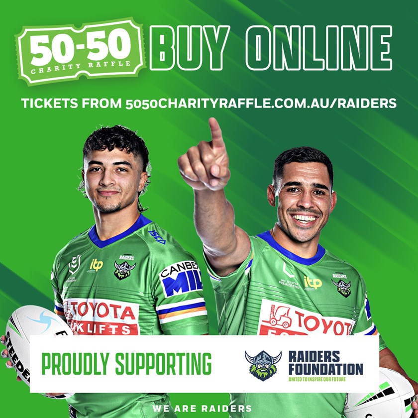 Through 50-50 Charity Raffle the Raiders Foundation (CDRL) are raising funds for the Group 16 Rugby League Clubs. Raffle tickets are available online the week leading into and at the game here: https://5050charityraffle.com.au/raiders