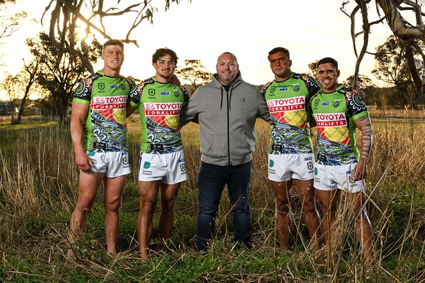 Raiders Indigenous and Torres Strait Island players Jack Wighton, Jamal Fogarty, Xavier Savage and Elijah Anderson all took part in a special photo shoot late last week to help launch this year’s jersey. With Jack Wighton and Jamal Fogarty embracing their ties to family by also having photos with their children.