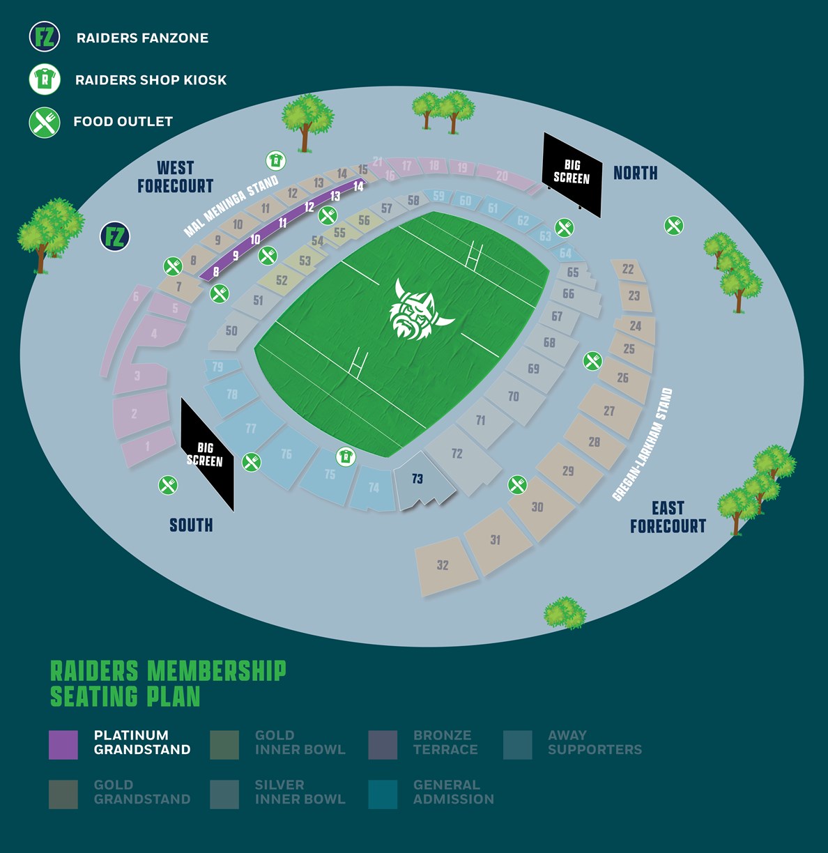 - Platinum Grandstand reserved seating at all 12 Raiders home games at GIO Stadium Canberra