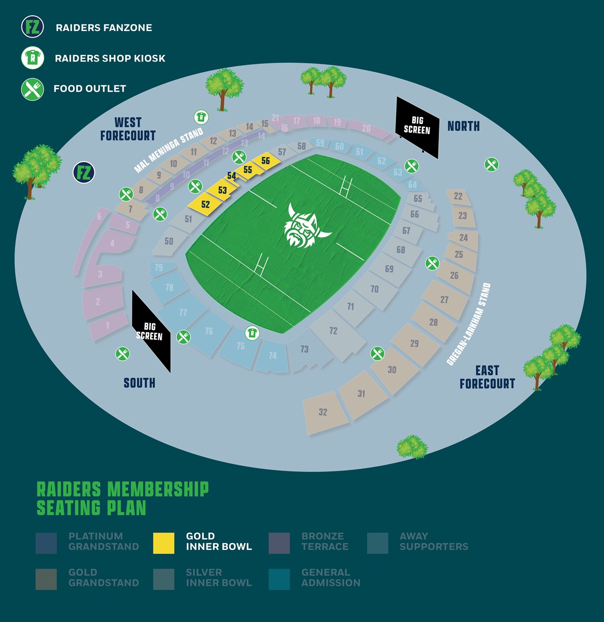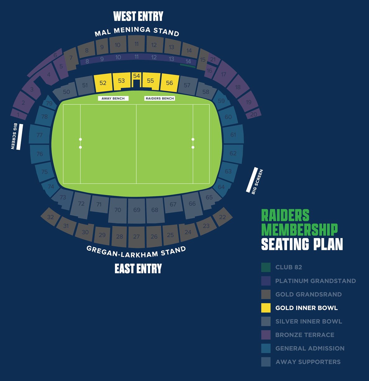 - Gold Inner Bowl reserved seating at all 12 Raiders home games at GIO Stadium Canberra