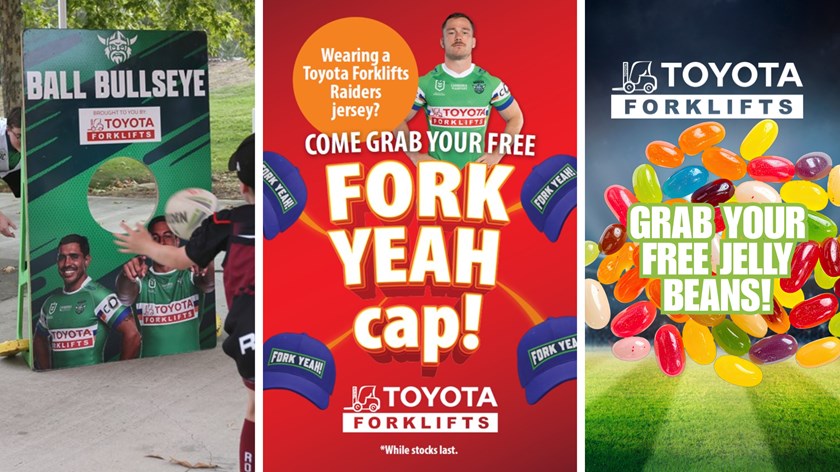 - Are you wearing a Toyota Forklifts Canberra Raiders jersey? Head to the Fan Zone to collect your very own Fork Yeah hat for free! Get in quick - stock is limited per game!