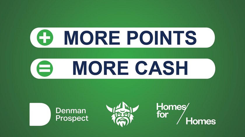 Thanks to Denman Prospect, each point that is scored at all Raiders NRL Home Games, earns $100 to the Points for Cash Tally, in an initiative to help combat homelessness in Canberra and provide people with safe and comfortable living conditions.