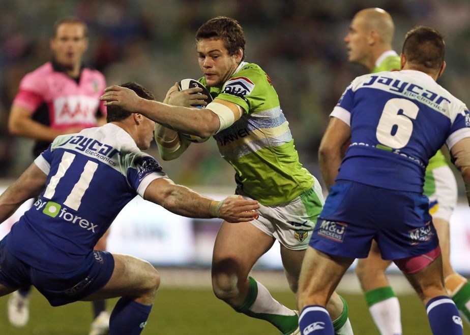 Following some team changes Brenko Lee came into the Raiders side to make his NRL debut, and they got the perfect start when Jarrod Croker was able to barge his way over a trio of Bulldogs to score the first try of the game.