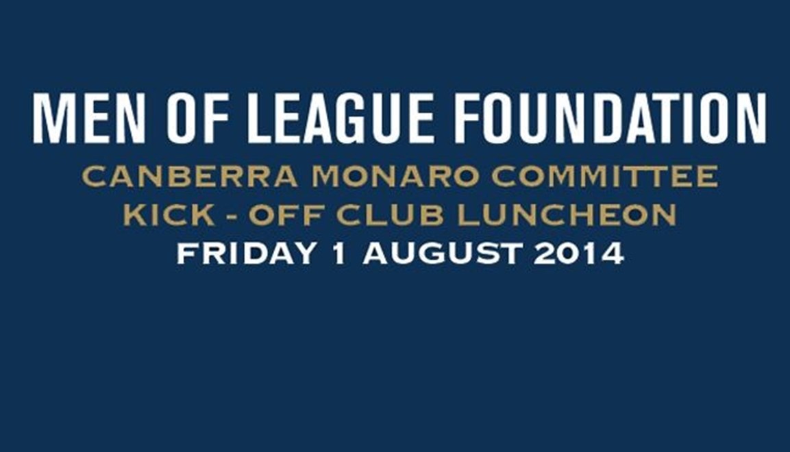 The Canberra-Monaro committee of the Men of League Foundation will be holding their kick-off club luncheon on Friday the 1st of August at Hogs Breath Cafe in Phillip.