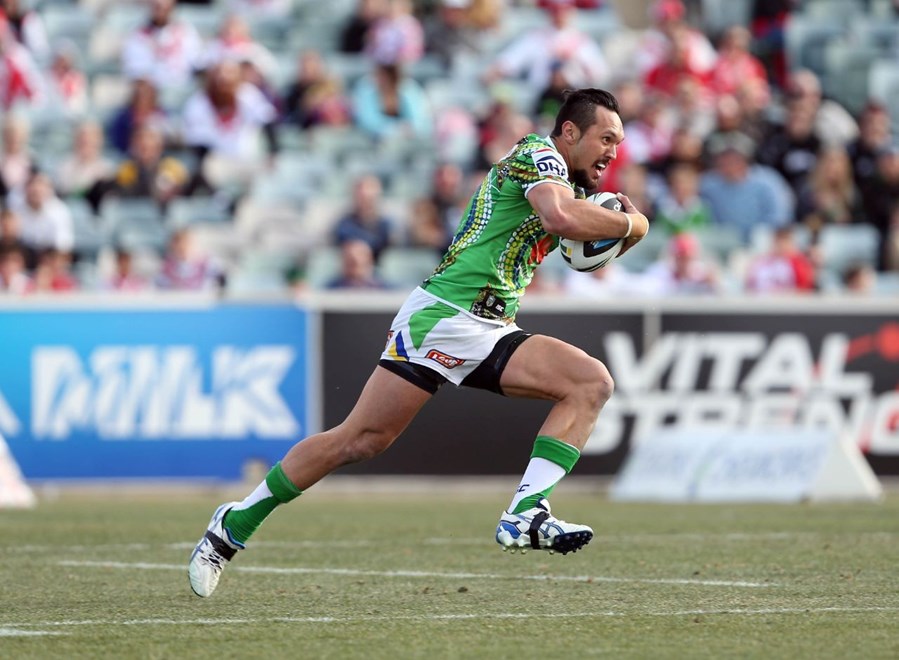 Digital Image by Robb Cox ©nrlphotos.com: Jordan Rapana :NRL Rugby League - Round 23, Canberra Raiders V St George Illawarra Dragons at GIO Stadium Canberra, Saturday August 16th 2014.