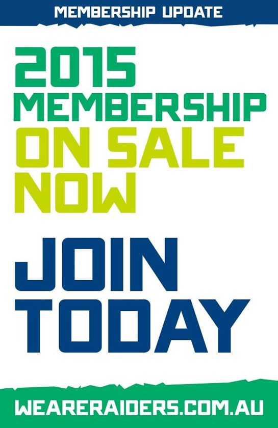 2015 Canberra Raiders Memberships are now on sale. Visit www.weareraiders.com.au for a full list of options