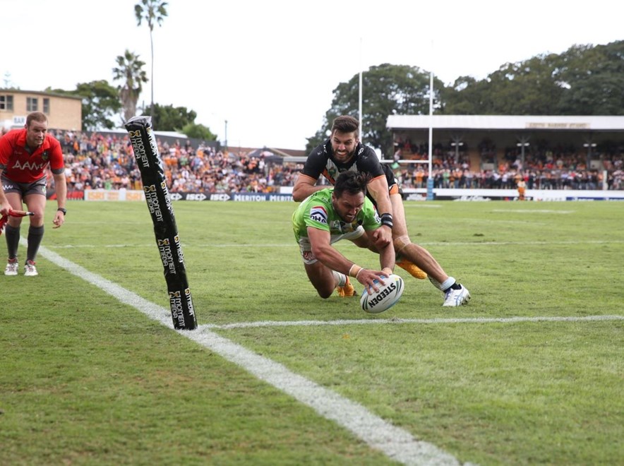 It was back-to-back tries for the Raiders after they found their way across the line in the 35th minute. Croker jumped higher than two Tigers defenders to successfully gather a chip kick from Blake Austin. Croker converted his own try to get the score back to 22-12 in the Tigers favour and that was where the scoring ended for the first half.