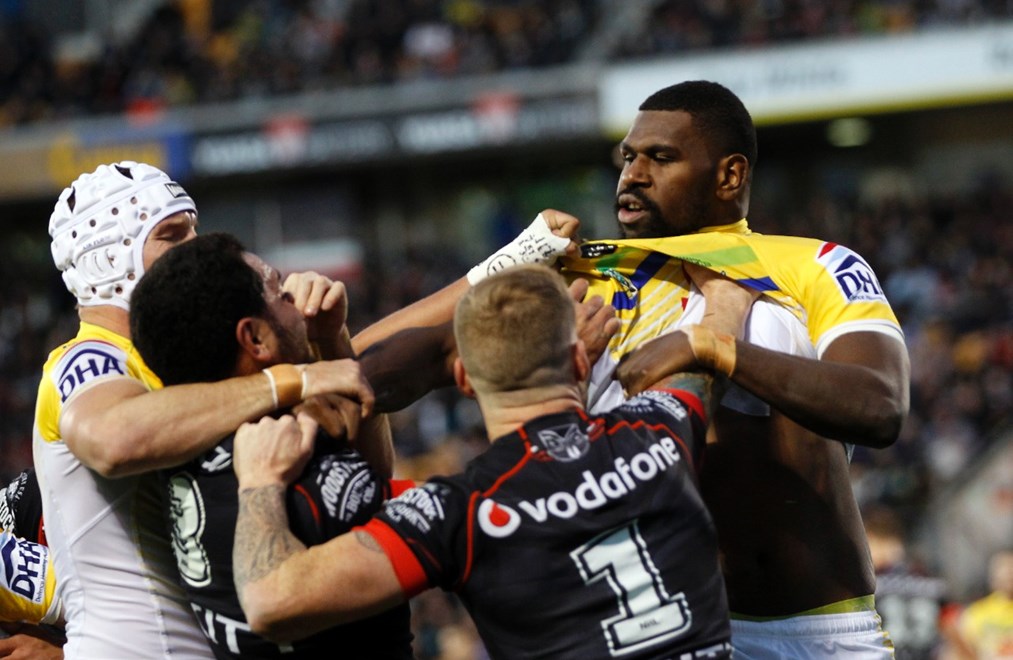 With only four minutes remaining New Zealand went about improving their points differential. Manu Vatuvei intercepted a lofted ball from Sam Williams, Vatuvei then broke a couple of tired tackles from Canberra to run in under the posts.