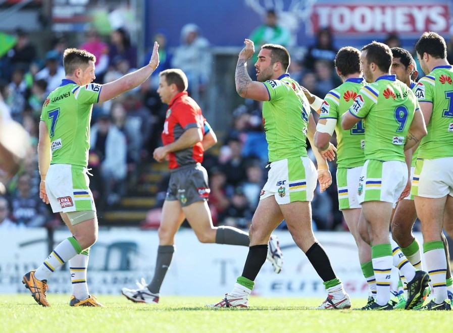 The Raiders were able to level the scoring after capitalising on a Penrith mistake. An error in the play the ball gave the Raiders the ball back 20 metres out. The Green Machine were able to create an overlap on the wing and scored in the corner through Rapana. The conversion from Jarrod Croker was successful to bring the game back to 6-6.