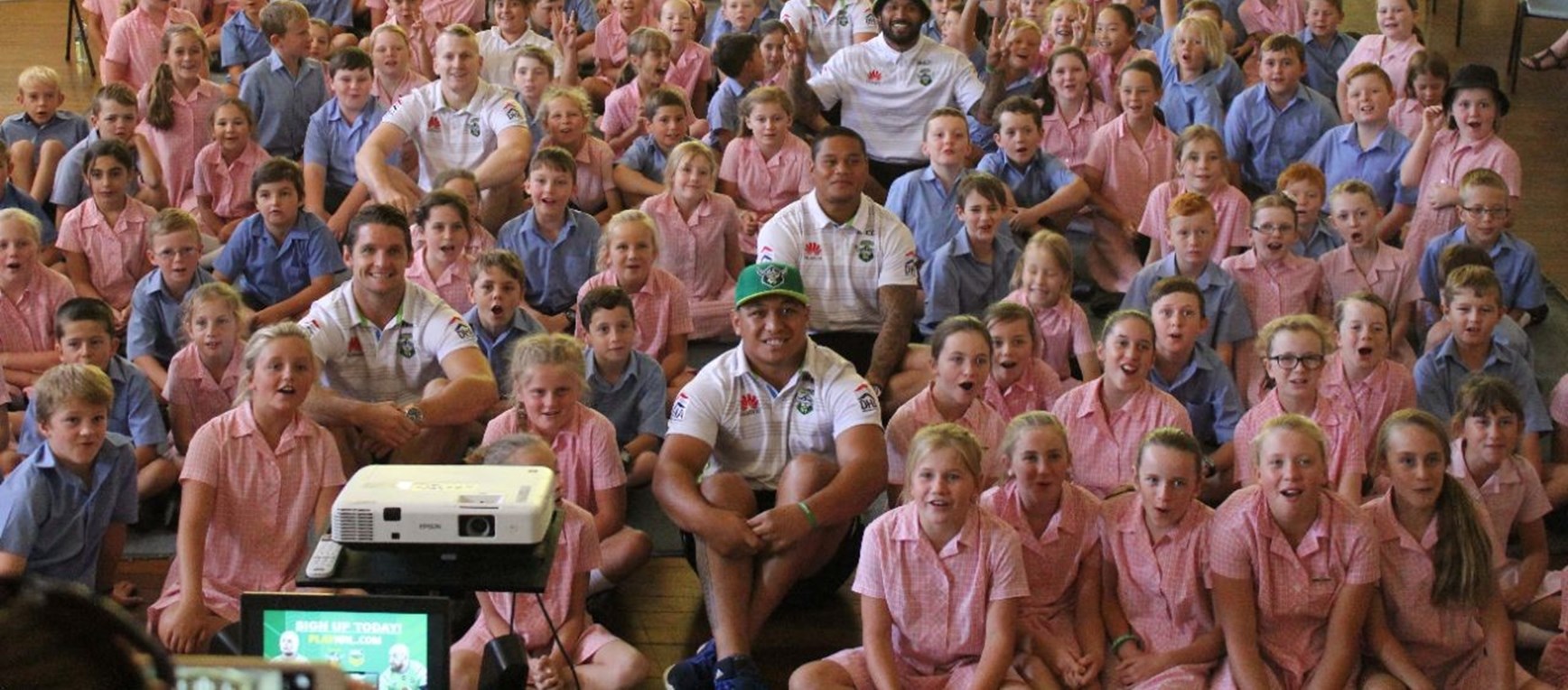 The Raiders embarked on a series of school visits today as part of the NRL community carnival. En route to Orange for the trial game, the team stopped off in a number of regional schools in Cowra, Blayney, Mulyan, Millthorpe and Canowindra.