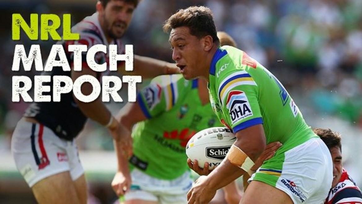 Raiders 21 (Papalii 2, Soliola, J. Croker Con J.Croker 2/4 Field Goal William) defeated Roosters 20 (Mitchell, Ferguson, Guerra Nikorima Con Mitchell 0/4 Pen 2/2)