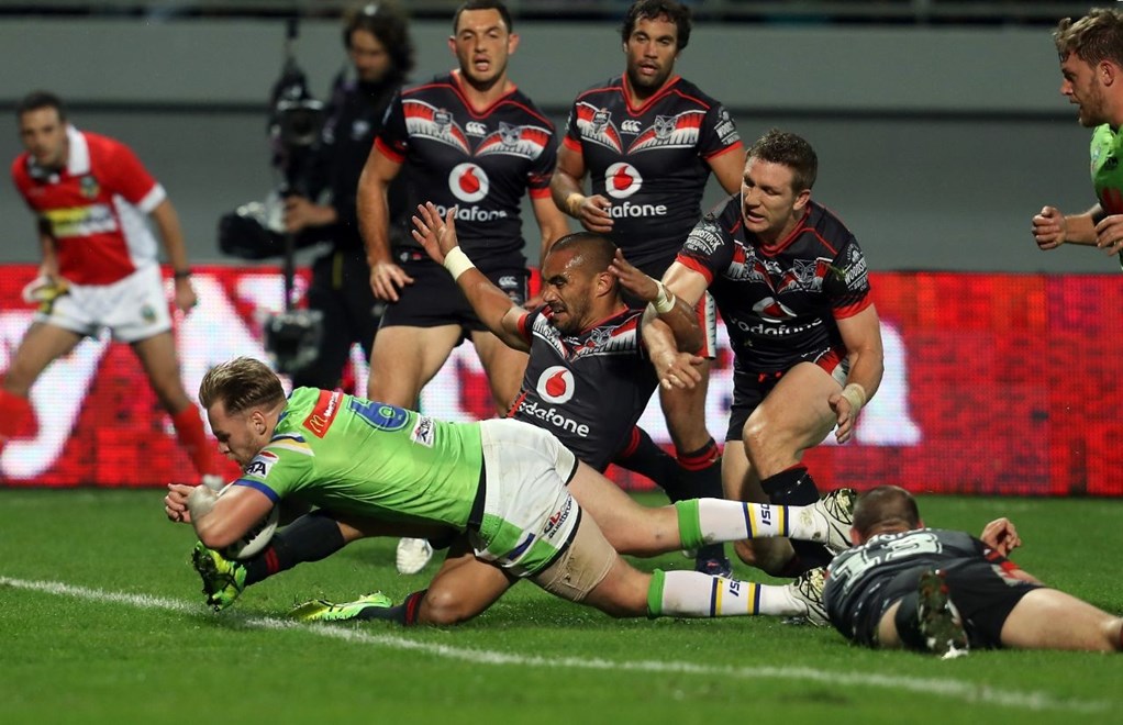 The Raiders repelled wave after wave of attack in their own half, before Croker left three defenders in his wake to draw level with Laurie Daley in third on the club’s all-time leading try scorers list. True to form, the skipper nailed the conversion to take a 20-point lead in the 38th minute.