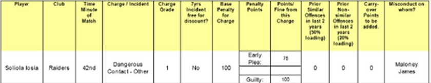 Soliola has taken the early guilty plea which means he free to play the Tigers this weekend. He will incur 75 carryover points.