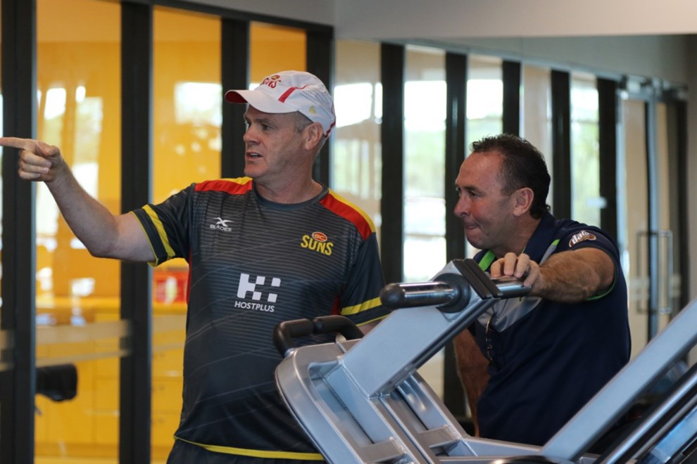 Coach Ricky Stuart, Chairman Allan Hawke and members of the Raiders football, high performance and coaching departments visited the Gold Coast SUNS' training facility last Friday.