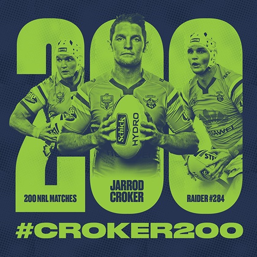 Walking out in Raiders colours for the 200th time is sure to be a special moment not only for Croker, but also for the Raiders community, so be sure not to miss it.