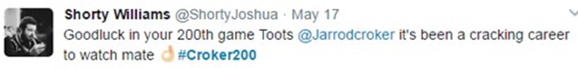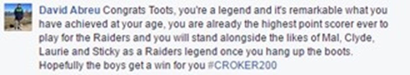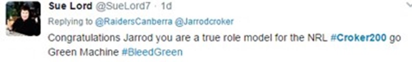 The Canberra Raiders faithful have taken to all forms of social media to congratulate and wish Jarrod Croker all the best for his 200th NRL game this weekend against the Eels.
