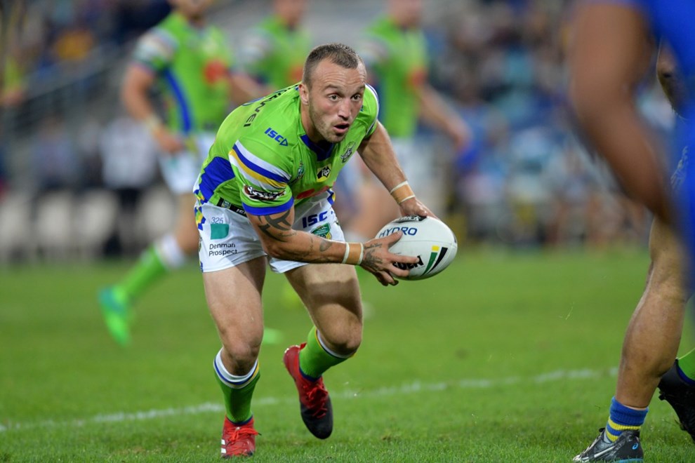 Despite one major missed tackle that almost led to a breakaway Raiders try he stuck to his task in defence and missed just three tackles for the game (well down on the nine he missed last week for Wests Tigers against Souths) while making 14. He ran the ball scarcely, finishing with 51 metres, and one of those runs ended with a knock-on in a big Jarrod Croker tackle. He and Gutherson combined for far too many seven-tackle restarts from kicks that were too heavy off the boot.
