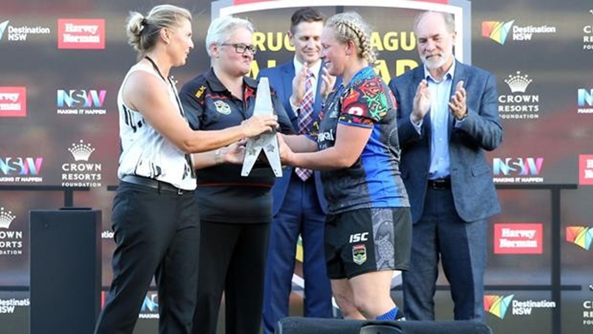"Here is a woman who had to fight for every inch for women's rugby league. Some of them lost jobs, lost houses, lost cars because they had to fund themselves and take time off work to play at that high level but their sacrifices have provided the opportunities now that these young girls get.