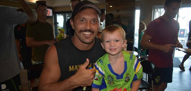 Raiders players Charlie Gubb, Nick Cotric and Paul Roache were on hand at Raiders HQ to present the hampers to the Members.