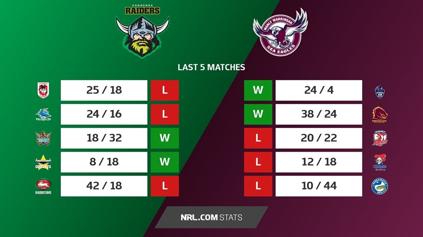 The Raiders will be out to turn their fortunes around after a last-start loss when they welcome the Manly Sea Eagles to GIO Stadium on Friday night.