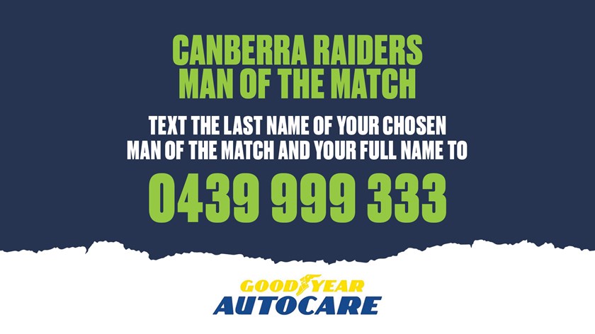 Each week for the first 10 home games, 100 green Austbrokers Canberra/ Raiders T-Shirts will be distributed at random around the ground. At the pre-game show 20 minutes before kick-off, 6 lucky attendees wearing their Austbrokers Canberra/ Raiders green shirt will be picked from the crowd.