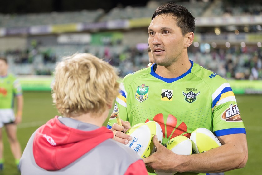 They will present each player with two Canberra Milk mini-footys which the player will sign. One footy goes to the junior player and one will be thrown into the crowd by the Raiders player to thank members and fans for their attendance.