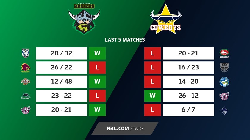 Last time: The Raiders pulled off a great team win when these sides met in Townsville back in round eight, prevailing 18-8.