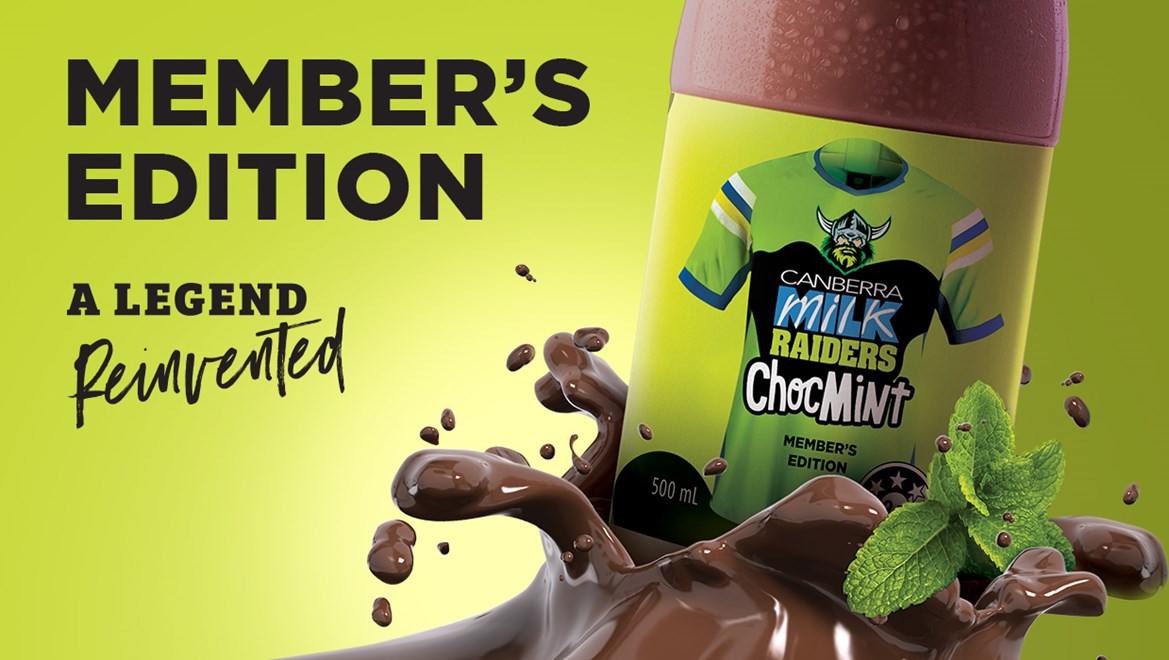 On the back of last year's epic season where we saw the Canberra Milk team up with the Canberra Raiders to relaunch their club milk to 'Raiders Choc-‐Mint' flavour, the popular milk is reinvented yet again, only this time it's all about the members.
