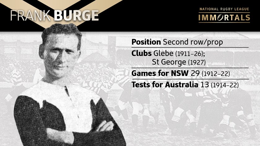 Frank Burge was probably the fittest player of his time. Talk has it that he ran from Broadway to Bondi on Sunday mornings as part of his fitness routine.