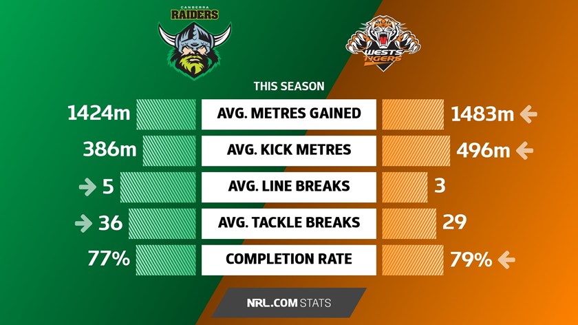 The Raiders will be out to maintain their dominant record over the Wests Tigers when the two clubs face off at GIO Stadium on Sunday afternoon.