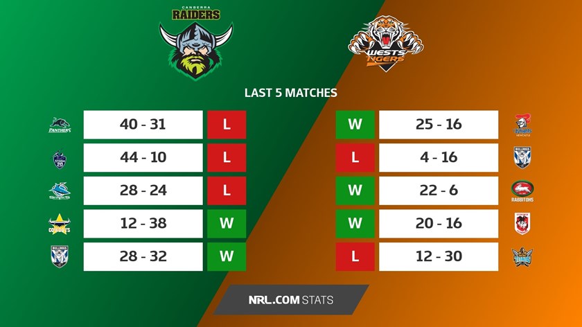 The Raiders will be out to maintain their dominant record over the Wests Tigers when the two clubs face off at GIO Stadium on Sunday afternoon.