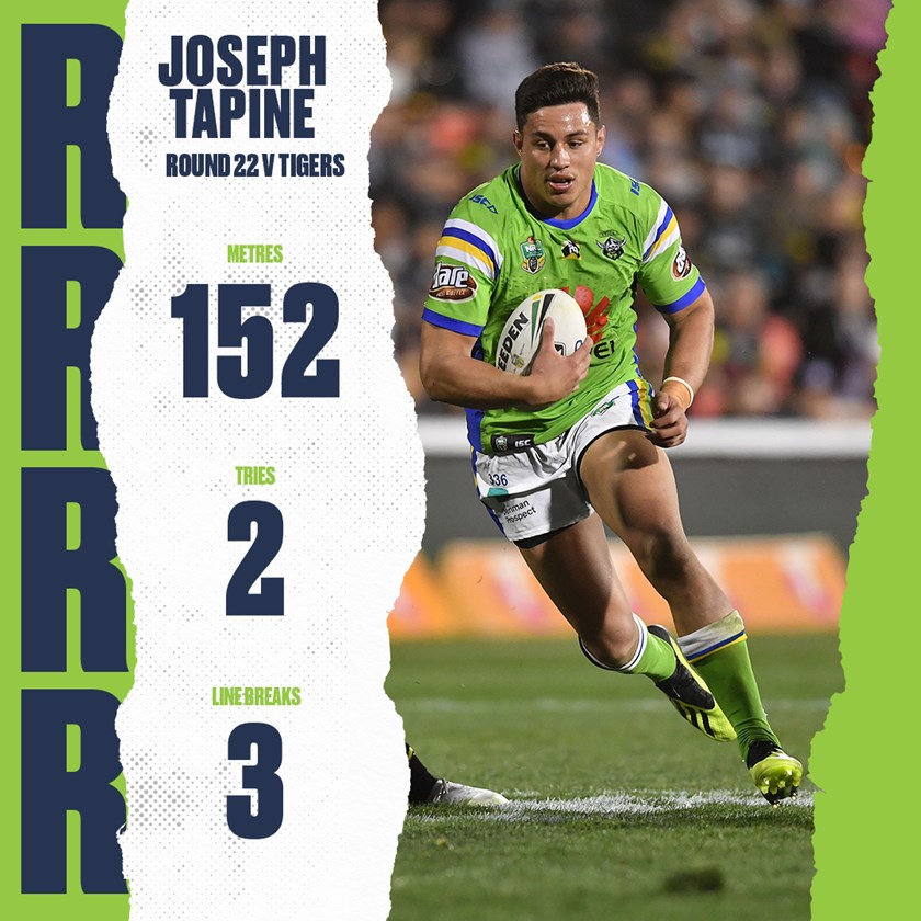 Tapine finished the contest with 152 metres, two tries, three line-breaks, three offloads and 29 tackles.