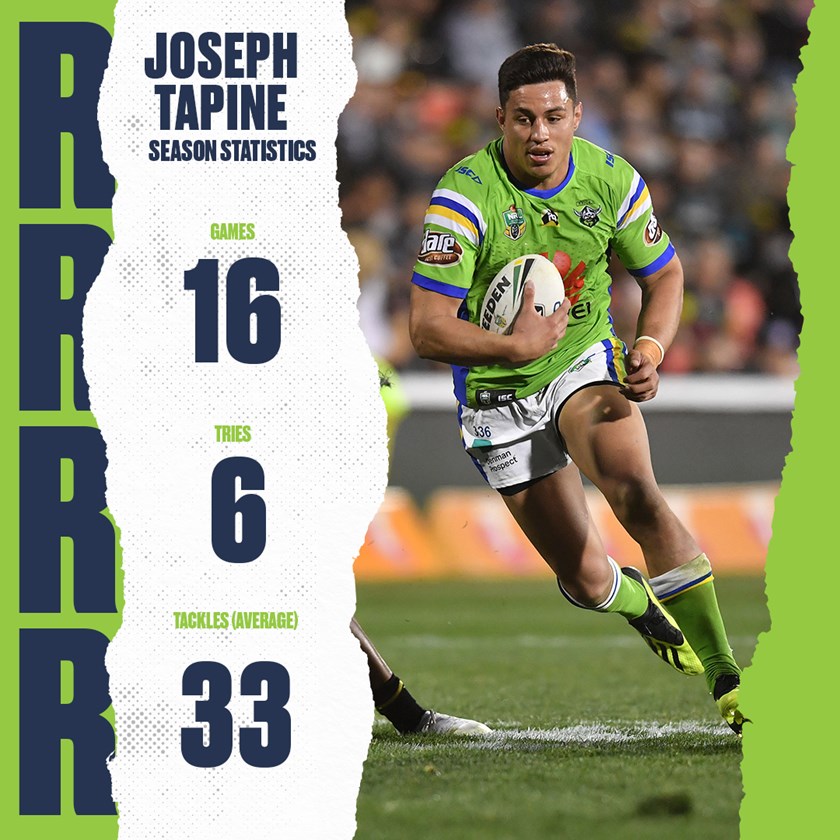 Tapine's best performance in 2018 came against the North Queensland Cowboys up in Townsville where the Raiders recorded an 18-8 victory in hot and humid conditions. Tapine made a whopping 53 tackles during the game.