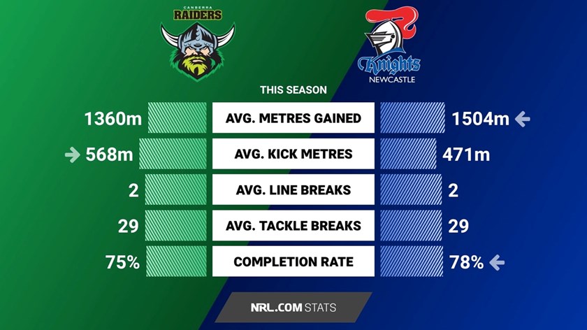 The Raiders and Knights will face each other for the 50th time this week, with Canberra having 27 victories over the Knights with also two draws in the past.