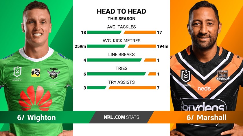 Five-Eighth for Raiders is number 6 Jack WightonFive-Eighth for Wests Tigers is number 6 Benji Marshall