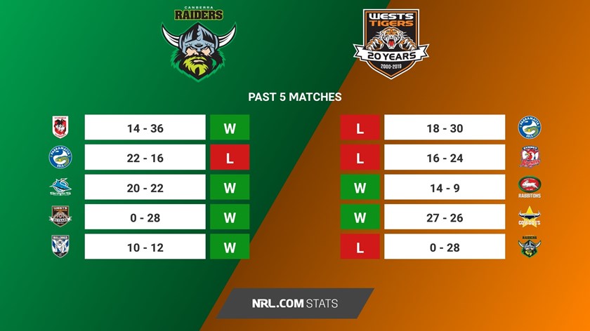 Last Time: The Raiders kept the Tigers scoreless in Round 13 earlier in the year, Canberra had five try scorers in the 28-0 win at Bankwest Stadium.