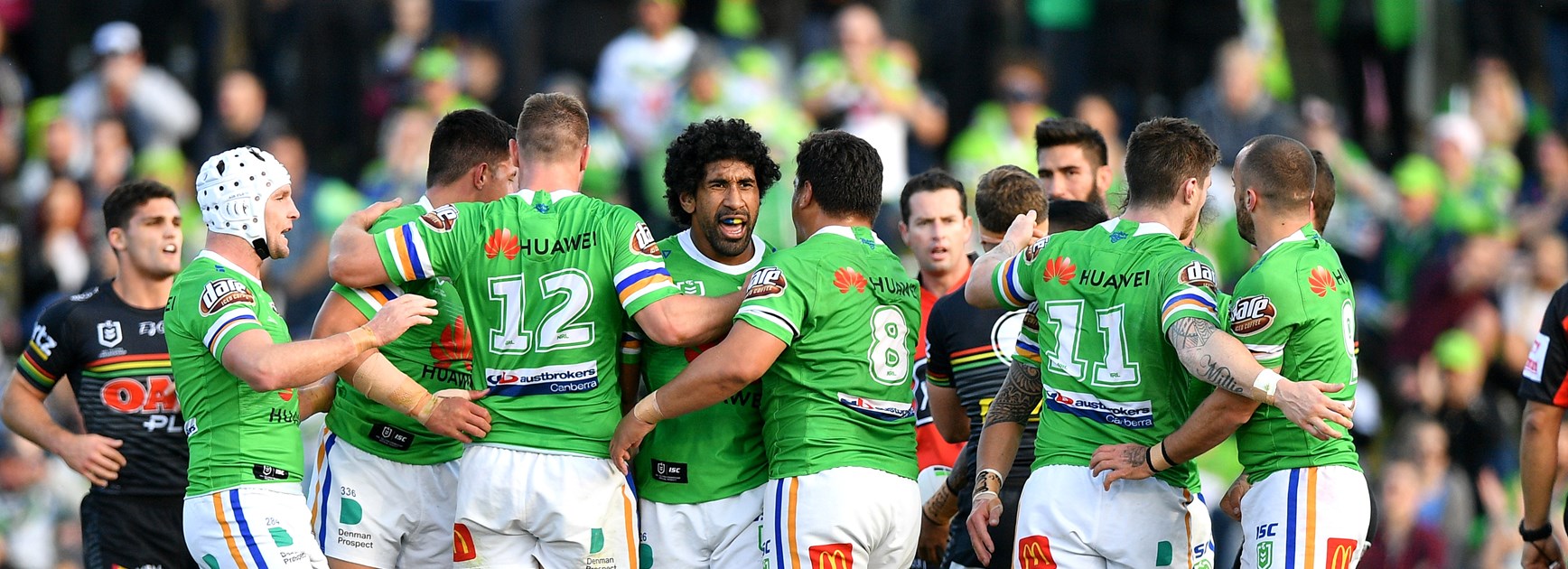The Canberra Raiders have celebrated Sia Soliola’s 100th club match with a 30-18 win over the Penrith Panthers at Panthers Stadium on Sunday night.