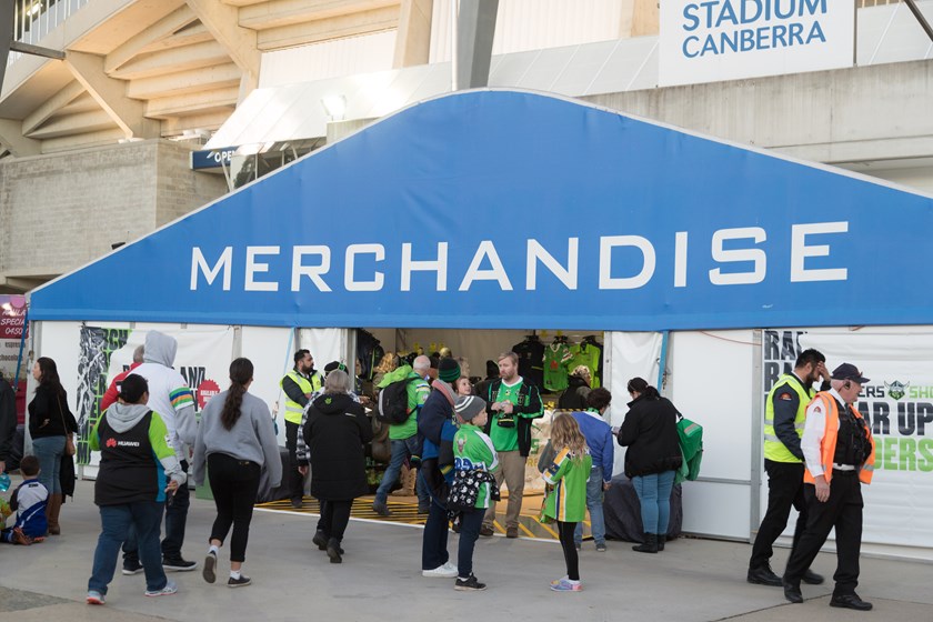 There are four merchandise outlets at GIO Stadium, full of the latest Raiders merchandise to show your support for the team! The outlets are located outside the west gate, in the East and West forecourts, and also in the Southern Inner Bowl.