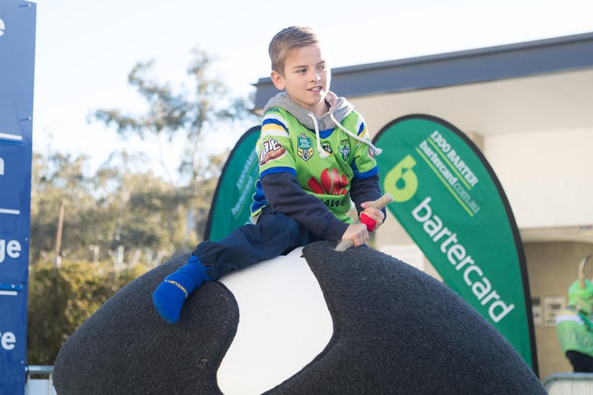 The Junior Member will give each player two Canberra Milk mini-footys to sign, one footy goes to the Junior Member and one will be thrown into the crowd by the Raiders player to thank Members and fans for their attendance.