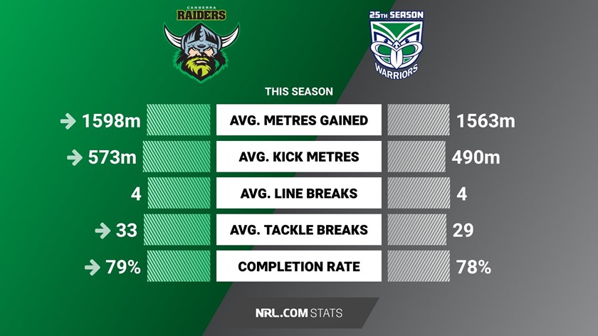 The Canberra Raiders and the New Zealand Warriors have met on 42 occasions, with the Raiders winning 22 of those times whilst the Warriors have won 19 times with the one game ending in a draw.