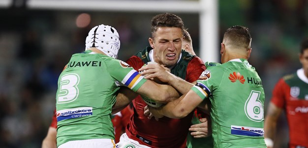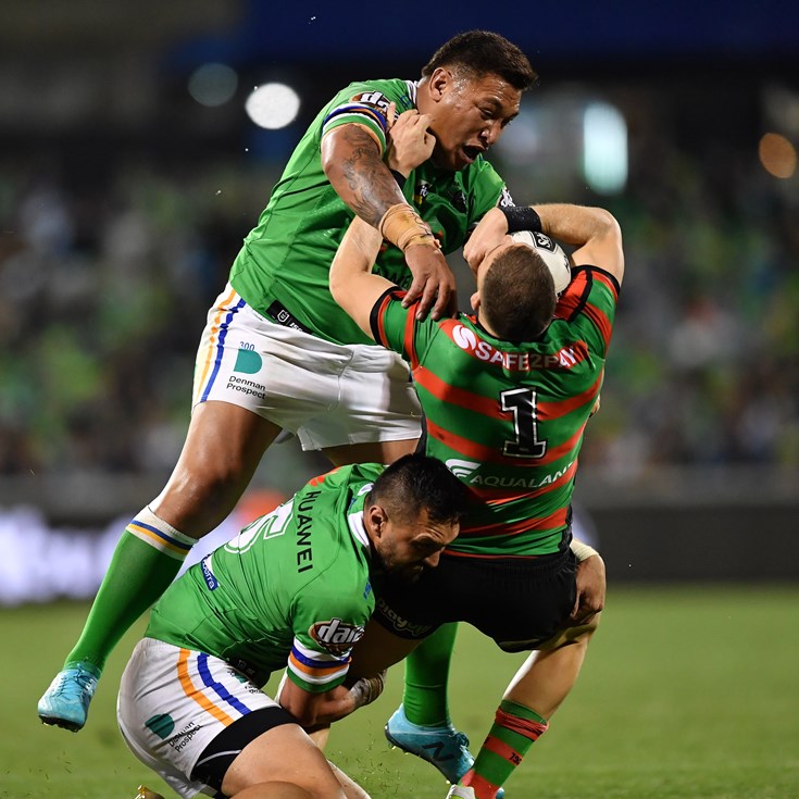 The Rabbitohs continued to pile on the pressure as they forced four consecutive line dropouts but the Raiders defence continued to hold on despite Joey Leilua being forced from the field with injury.