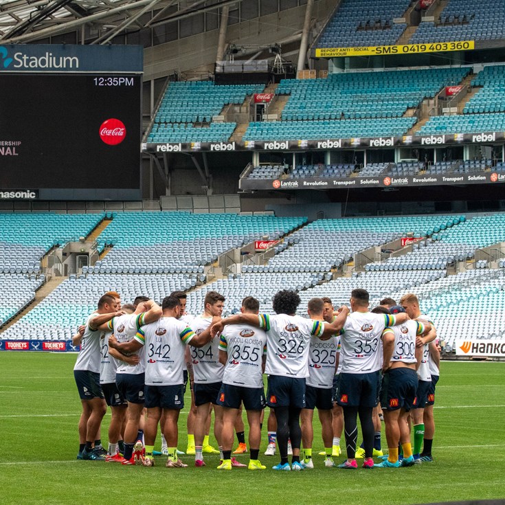 The Roosters had the first opportunity of the match after four minutes when Boyd Cordner forced his way over the line but desperate defence led by Charnze Nicoll-Klokstad prevented the ball from being grounded.