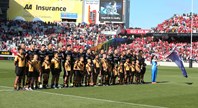 Eden Park erupts as the Tonga Invitational side perform the Sipi Tau before their Test against Australia