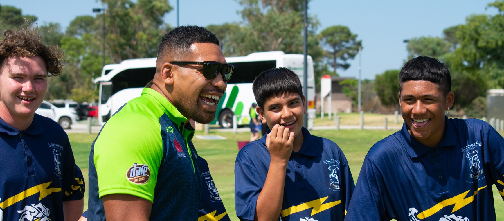The Canberra Raiders Nines squad visited Ellenbrook Senior College in Perth to run through some rugby league skills with them.