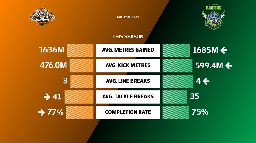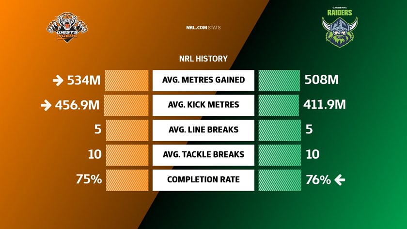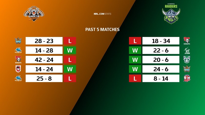 Two competition points separate the two sides after four rounds of play, Canberra are in fourth position, while the Tigers are in ninth. The Raiders have had the wood over the Tigers in recent times, winning six from the last seven and posting some mammoth scores in the process.