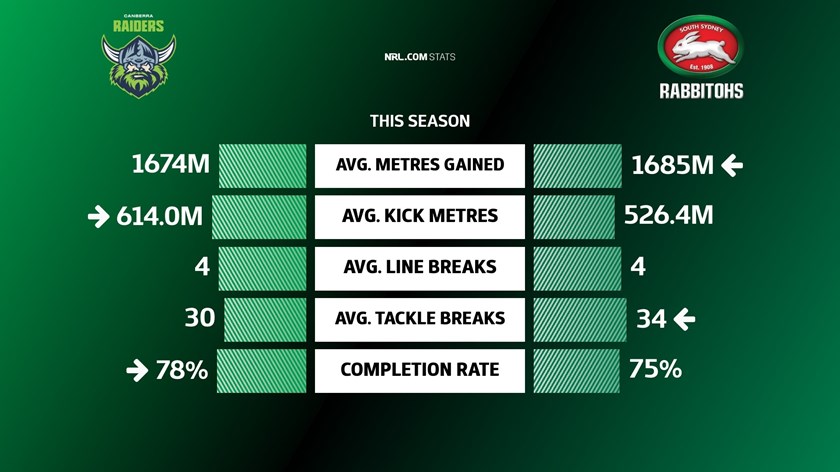 With Josh Hodgson missing, the Rabbitohs will need to be wary of the attacking threat of the Raiders halves in Jack Wighton and George Williams.