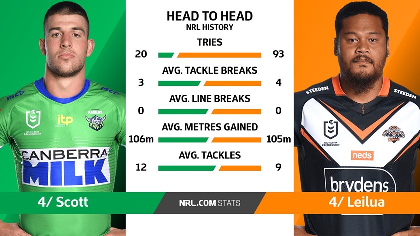 2nd Row for Raiders is number 12 Elliott Whitehead2nd Row for Wests Tigers is number 12 Luciano Leilua