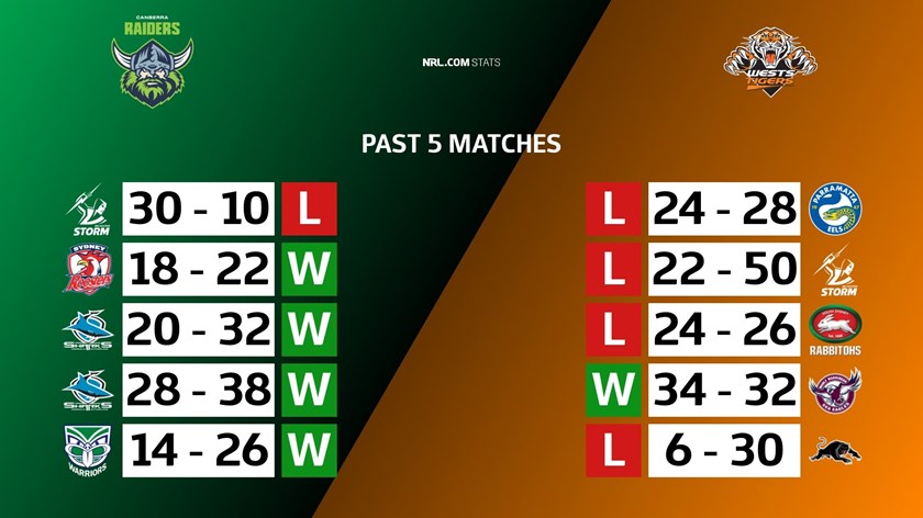 The Raiders and the Wests Tigers have clashed 38 times, with both teams winning 19 and a draw. In previous years the Raiders have been the better team, not having lost to the Tigers since 2018.